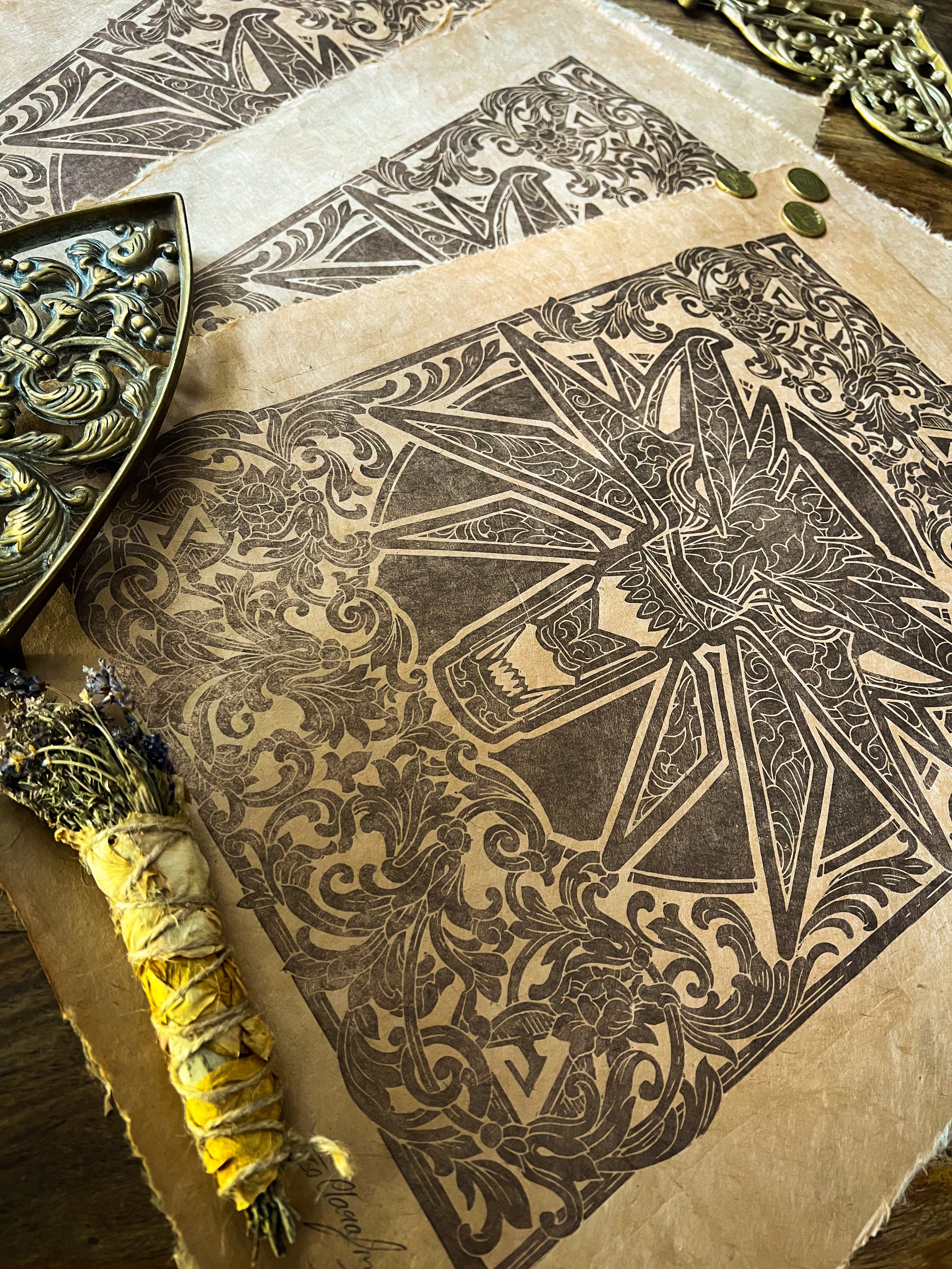 I use beautiful antique Lokta paper with custom hand torn edges.